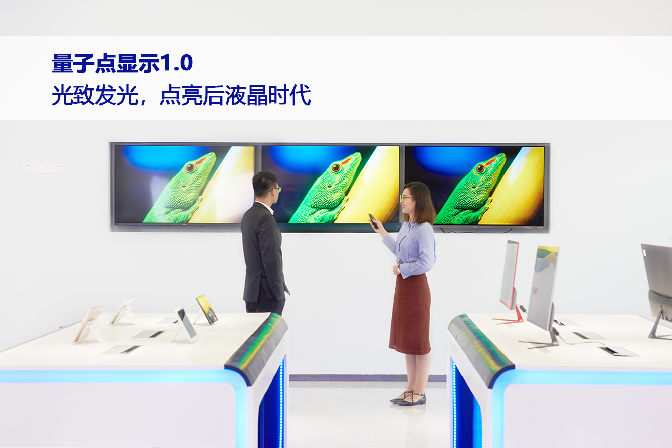 量子點光致發(fā)光顯示產(chǎn)品結合新一代納米量子點材料和高性能聚合物材料,采用遠程激發(fā)技術,將藍光轉化為明亮的綠光和鮮艷的紅光,能夠激發(fā)產(chǎn)生高純度的色彩光譜,色域更高,帶來顛覆性的畫質革命,且具有光源功耗低、使用壽命長、節(jié)能環(huán)保更健康的優(yōu)點,能廣泛應用于AR/VR、手機、平板、筆電、顯示器、電視、商顯等不同尺寸、不同領域的終端產(chǎn)品。